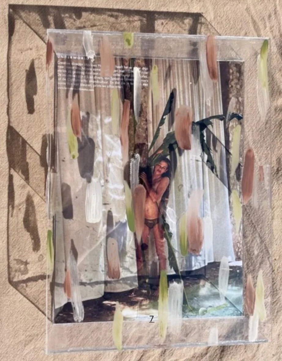 De afbeelding is geplaatst in een box van plexiglas, om ze de transparantie te verduidelijken. De box van benadrukte de transparantie, maar bracht het niet echt over. Om de transparantie over te brengen, zijn er verfstrepen aangebracht op de box. De gedachte hierachter was: de openheid benadrukken door dichtheid te creëren.