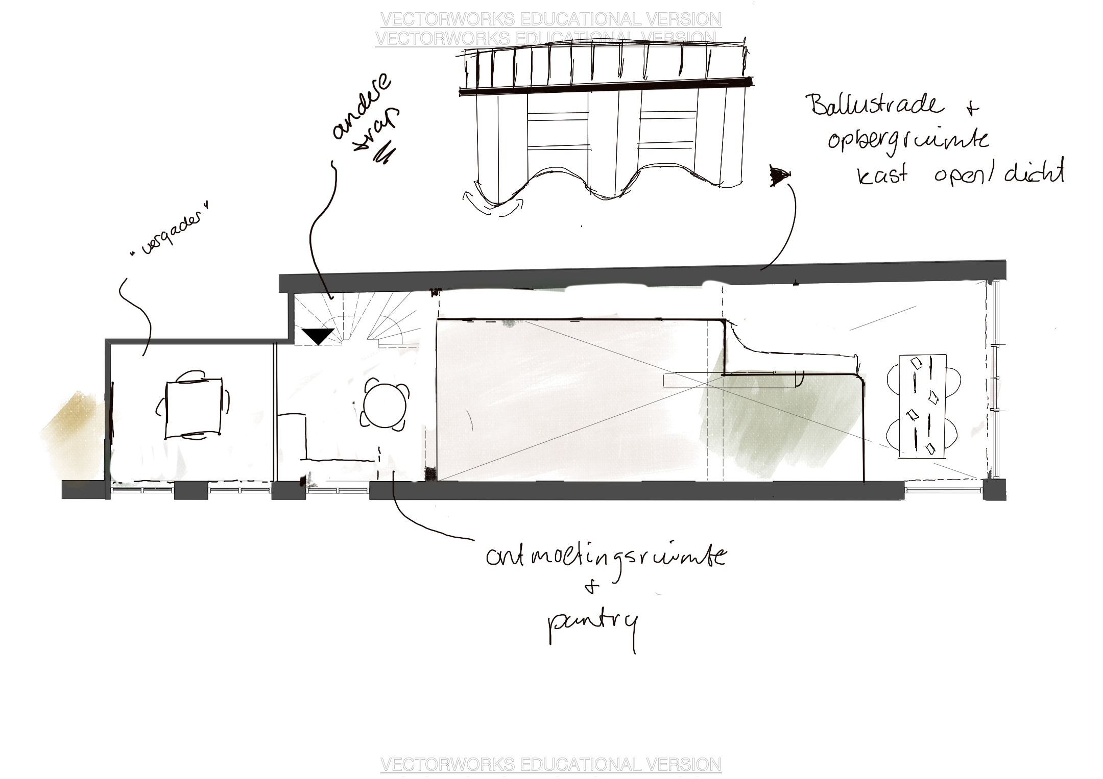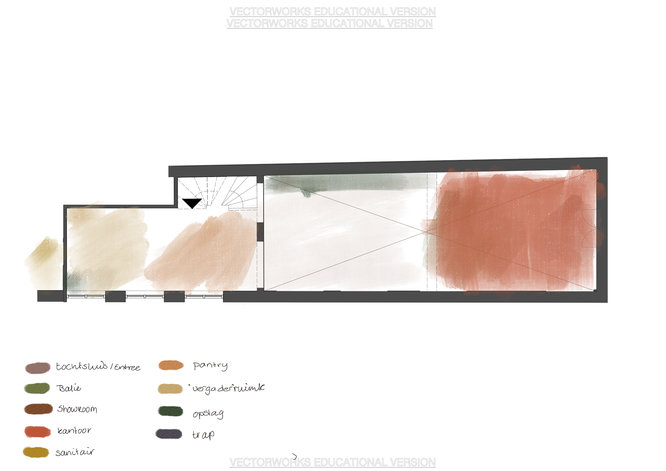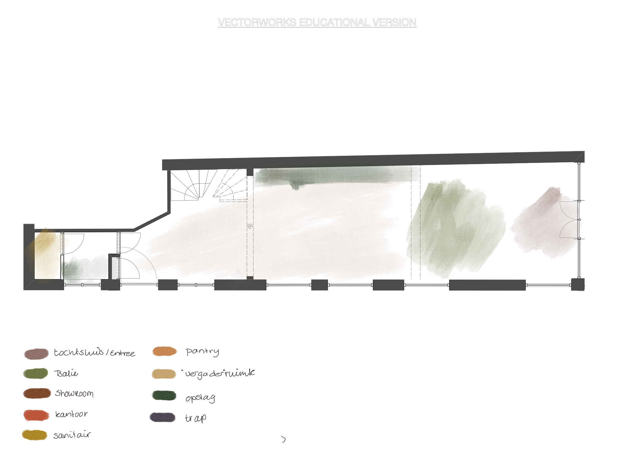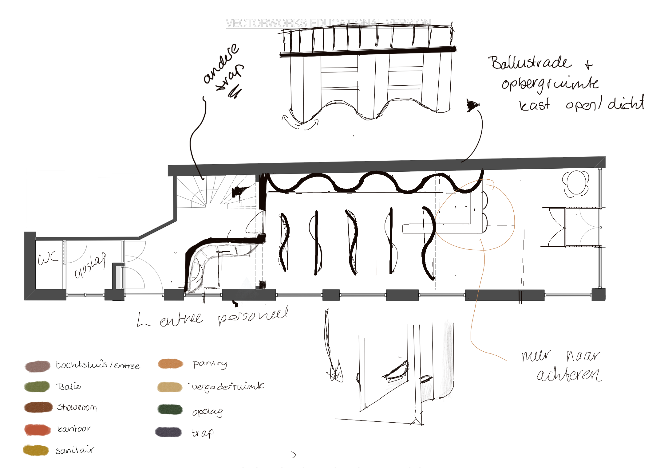 In een historisch pand in het centrum van Deventer moet een ontwerp voor een kantoor met showroom gerealiseerd worden. Hierbij moet er rekening gehouden worden met de bouwkundige (on)mogelijkheden van het pand.